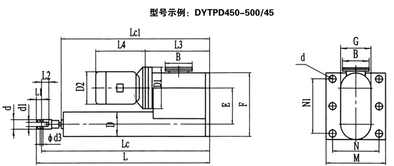 (型號示例: DYTPD450-500/45) 單位:(mm )