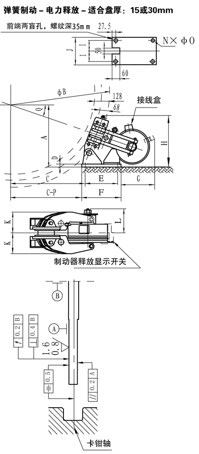 制動(dòng)力大,維修費(fèi)用低,帶襯墊磨損自動(dòng)補(bǔ)償裝置(制動(dòng)力矩穩(wěn)定) ,晌應(yīng)時(shí)間短。安全制動(dòng)器。