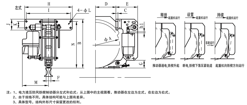 單臺(tái)防風(fēng)鐵模制動(dòng)器的防風(fēng)能力(折算為水平方向的力F)